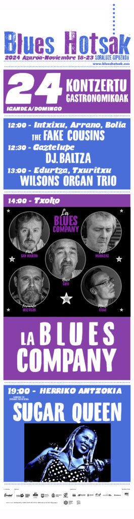 Talde berean baldin baditugu Ñaco Goñi harmonizista historikoa (Tonky Blues Band, Jokers, Malcolm Scarpa, Ñaco Goñi eta Bluescavidas), piano bluesaren erreferente den Paul San Martin donostiar pianista eta abeslaria (Stay Blues, Paul San Martin trio, The Fake Cousins) eta alde batetik Edu Bighands madrildar gitarrista eta abeslari geniala (Dinamita Blues Band, Ñaco Goñi eta Bluescavidas Whiskey Train, Edu Bighands), eta bestetik Fernando Beiztegui gitarra jotzaile eta kantari granadarra, Martí Elias (Mambo Jambo Ray, Ray) bateria jotzaile katalanarekin osatuz, ez dago dudarik La Blues Company dela azken urteotak bluesaren zaleek izan duten albisterik onena. Euskal Herrian grabatu berri duten diskoa aurkezten.